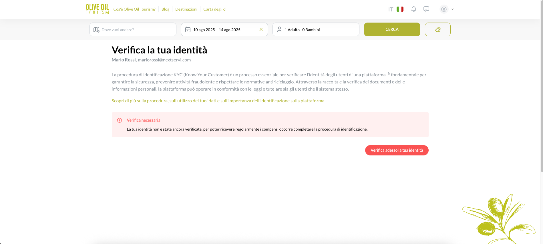 Nella sezione dedicata, clicca sul pulsante “Verifica adesso la tua identità” per avviare la procedura di verifica documentale.